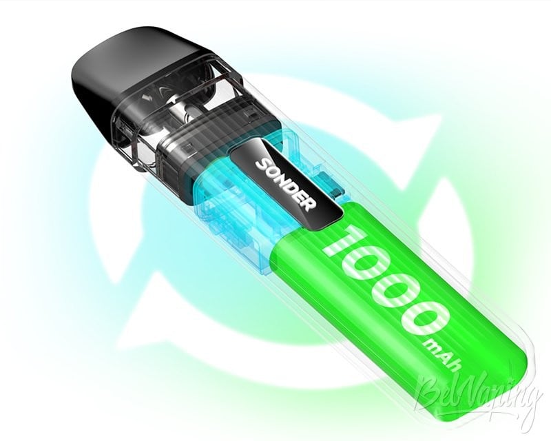 مزودة ببطارية مدمجة قوية بقوة 1000 مللي أمبير في الساعة لمدة تصل إلى يومين من الـ vaping بشحنة واحدة