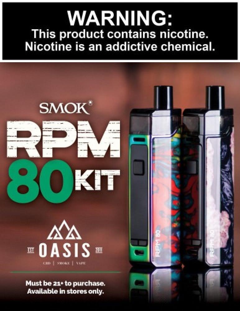 تمثل سموك ار بي ام 80 نسخة أحدث ومحسنة من ار بي ام 40. مجهزة ببطارية 3000mAh مدمجة ومجموعة شرائح IQ-80 متقدمة، يمكن RPM80 الاشعال في 80W وتوفر ميزات حماية متعددة.