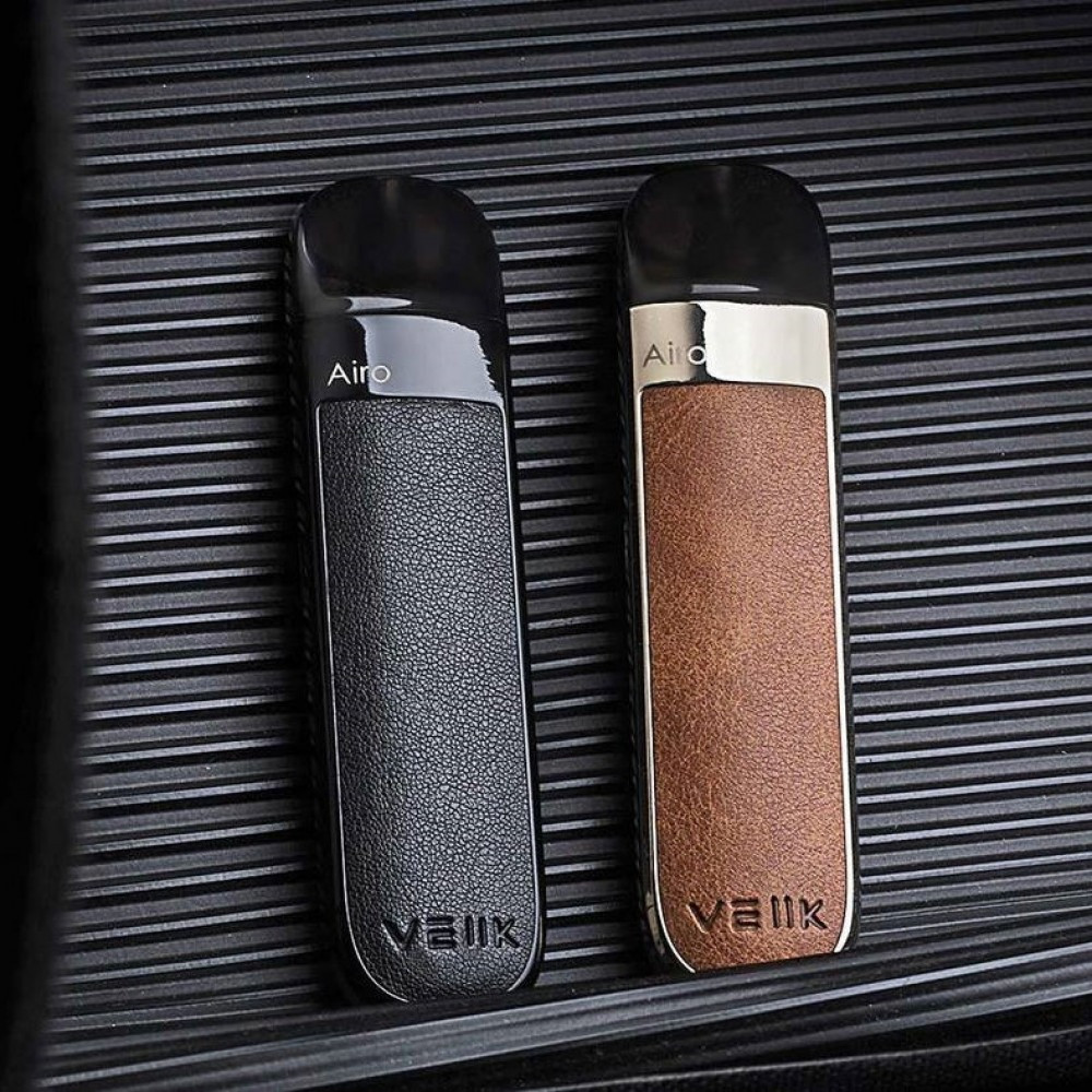 VEIIK Airo هو نظام جراب مفتوح يتميز بتصميم أنيق / ملصقات جلدية مقلدة / بطارية مدمجة بسعة 360 مللي أمبير في الساعة / سدادات 2 مل / مفتاح سهل الاستخدام يعمل بالهواء.