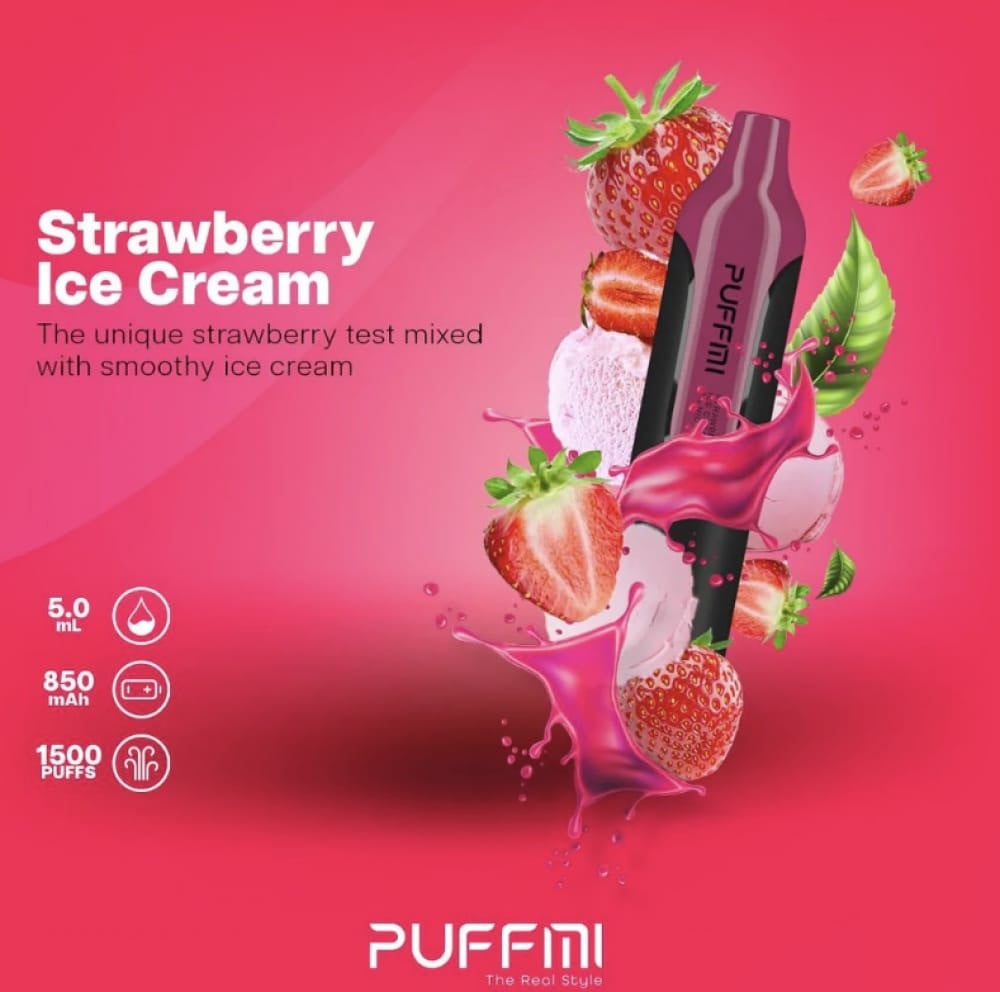 سحبة بف مي 1500 سحبة فراولة ايس كريم - PUFFMI 1500 PUFF STRAWBERRY ICE CREAM
