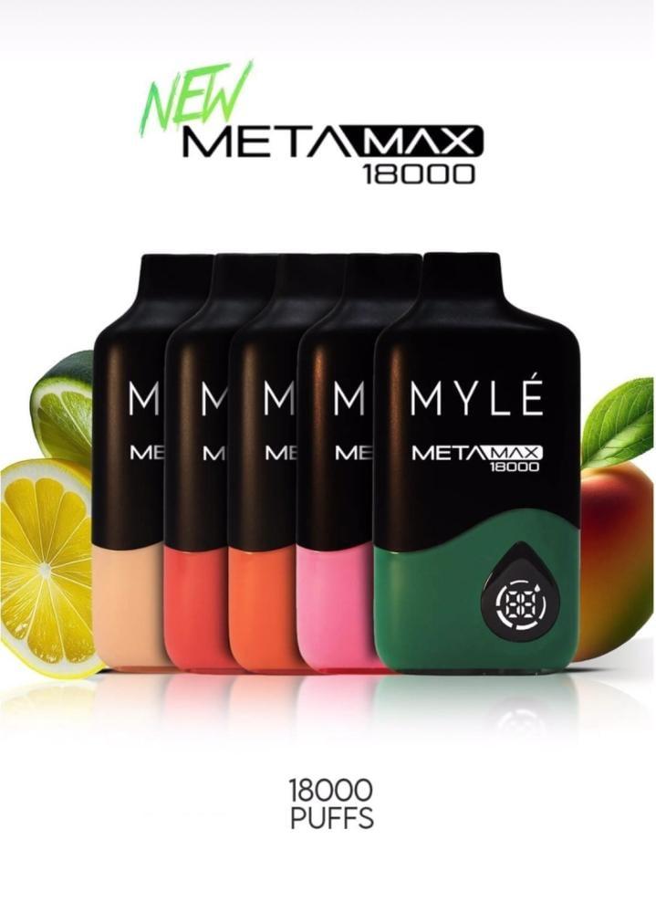 سحبة مايلي ميتا ماكس 18000 شفطة – MYLE META MAX 18000 Puffs مصممة بطريقة عصرية وذكية لتمنحك متعة في كل سحبة، تتمتع بالعديد من المزايا التي تجعلها خيارك الآول.