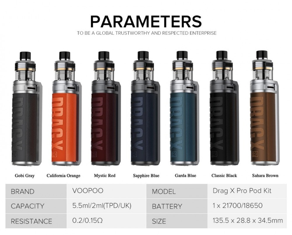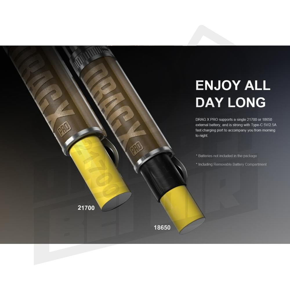يستخدم Drag X Pro مقترنًا بـ TPP-X Pod الجديد، ملفات من سلسلة TPP Coil لتقديم بخار ونكهة مرضية من eJuice أو أملاح النيكوتين المفضلة لديك.