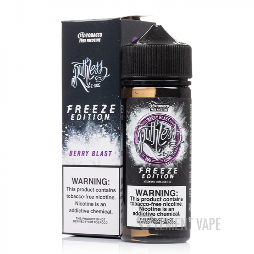 تتوفر إصدارات Ruthless Freeze في عبوات 120 مل. 3 ملغ ، الإصدارات متوفرة ، وكلها مصنوعة من التبغ الخالي من النيكوتين.