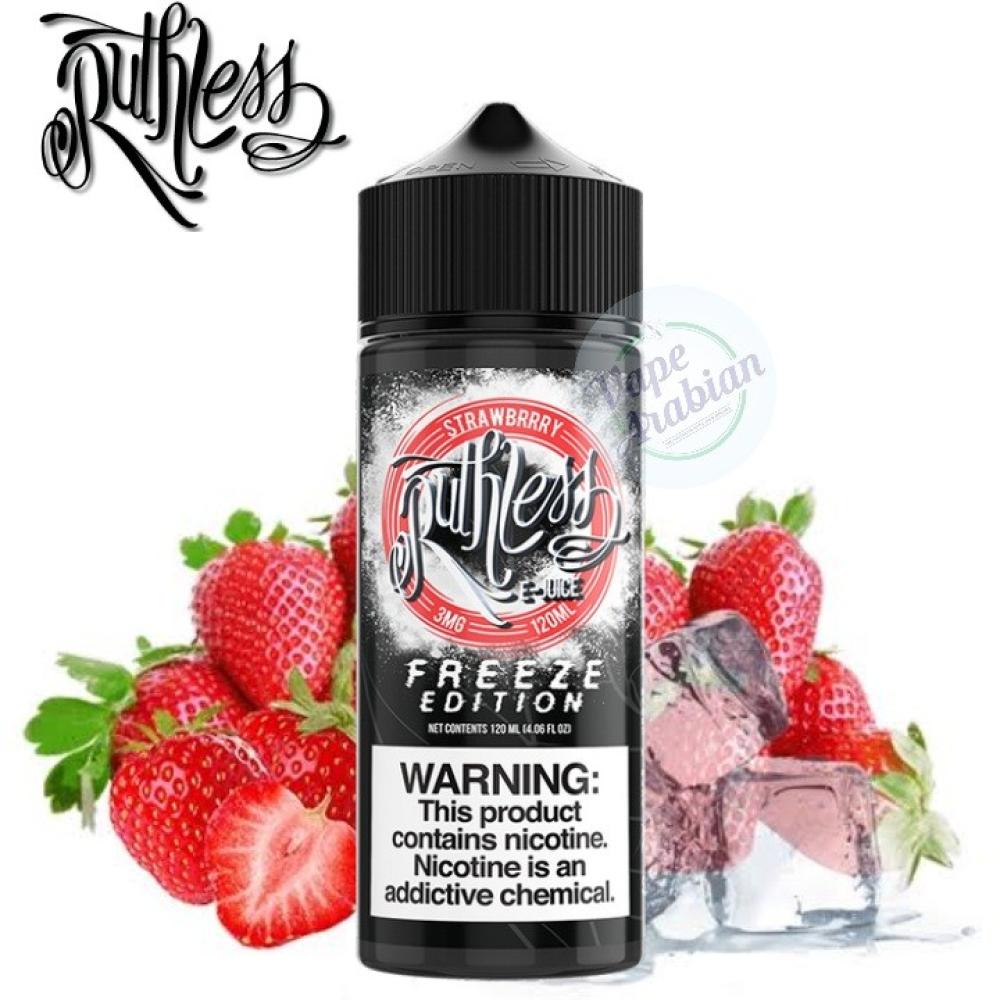 تتوفر إصدارات Ruthless Freeze في عبوات 120 مل. تتوفر إصدارات 3 ملغ و 6 ملغ ، وكلها مصنوعة من التبغ الخالي من النيكوتين .