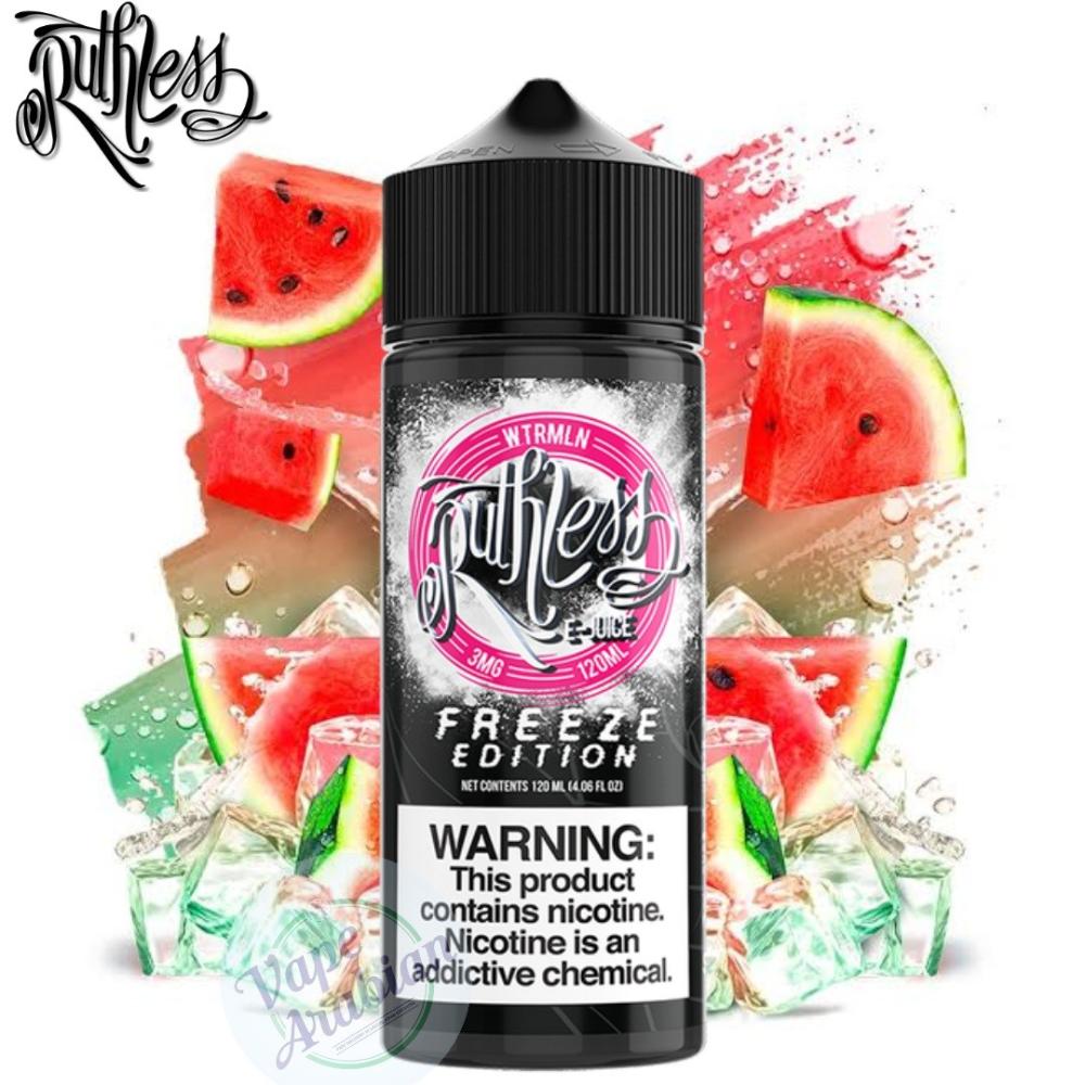 يأتي Ruthless Freeze Wtrmln E-Liquid Shortfill معبأ في زجاجة غوريلا ممتلئة بسعة 120 مل ويحتوي من سائل vaping الإلكتروني بقوة 3 مجم.