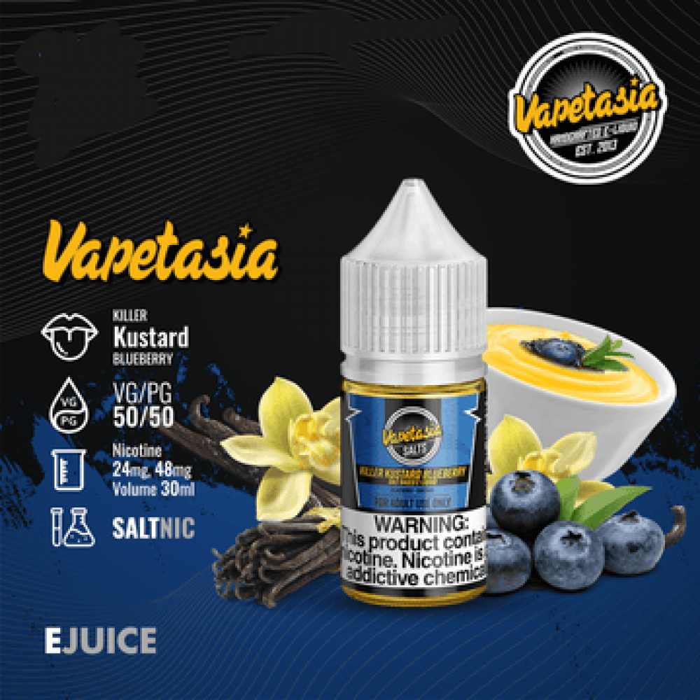 تقدم Vapetasia سائل Blueberry Kustard ! متوفر في زجاجات 30 مل ، هذا الكاسترد بلوبيري هو نعيم خالص! إذا كنت تبحث عن الكاسترد الأكثر نعومة وغنى ولذيذ على هذا الكوكب مع قبلة التوت المثالية ... لا مزيد من البحث!